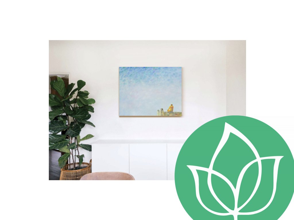 Prostor obrazu, jeho hloubka a nekonečno jsou obratně zdůrazněny postavou meditujícího člověka. Jeho pozemské záležitosti jsou jako kamenný objekt, na kterým sedí. Jeho myšlenky jsou podobné lehkým, efemerním praménkům páry stoupajícím k nebesům. Klid a mír. Přinutit se sedět nehybně, oprostit se ode všeho, co je nicotné, povznést se v myšlenkách a pocitech k nekonečnu.